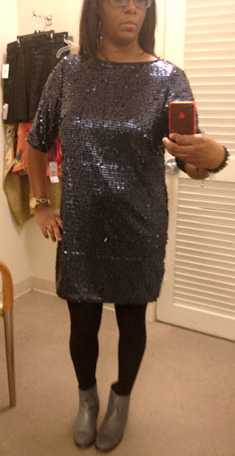 There were sequins involved, how could I not try this one on!! This navy dress is also a perfect buy for any upcoming holiday events, a fun night out and definitely for a New Year's celebration. This is a shift dress so don't expect too much shape. I tried it on a size larger, but I would say it is tts. I just know I'm not the type to like clingy clothing, so sizing will depend on whether you want some va-va-voom or not. The sequins are attached to a netting that is layered on top of the main body of the dress. Sequins are one of those iffy wardrobe fabrics because of the high possibility of losing them, but this dress seemed well made and the color is dark enough to camouflage any disappearing sequins.